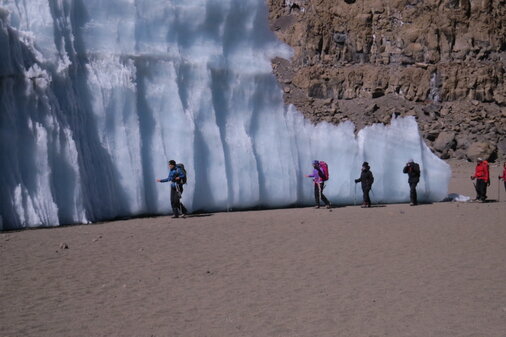 9.Tag: Die Wanderung ins Karanga-Tal dient der weiteren Verbesserung der Akklimatisation. Sie steigen direkt nach dem Frühstück durch die so genannte „breakfast wall" bis auf 4.250 Meter auf, ehe Sie raue Lavastufen zum Zeltplatz oberhalb eines kleinen Baches – der letzten Wasserstelle im Karanga-Tal – bringen, 3.950 m (ca. 4h). Heute Nacht werden Sie gut schlafen, da Sie bereits die vierte Nacht auf fast 4.000 m verbringen.