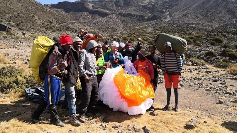 "mit dem Gleitschirm vom Kilimanjaro fliegen"